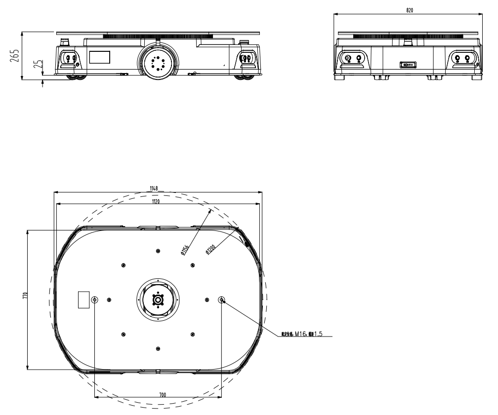 - 旋转直径1200 mm
