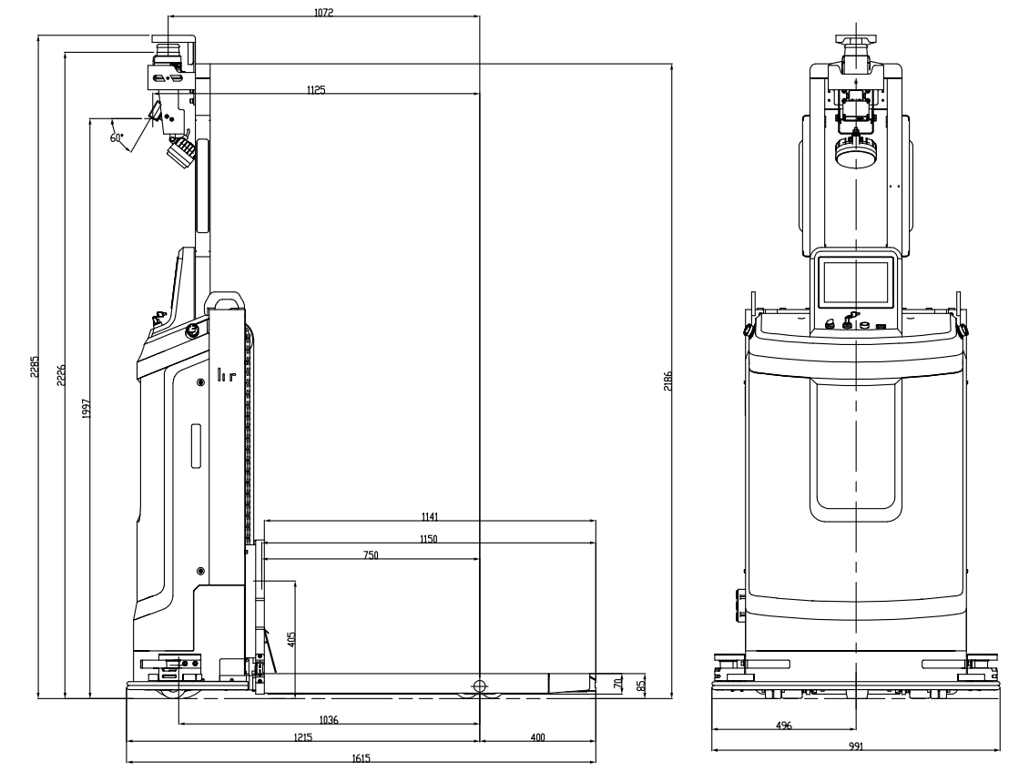 ● 采用激光SLAM导航,具有智能自主栈板识别功能,可以在窄通道内实现自主栈板识别取放货