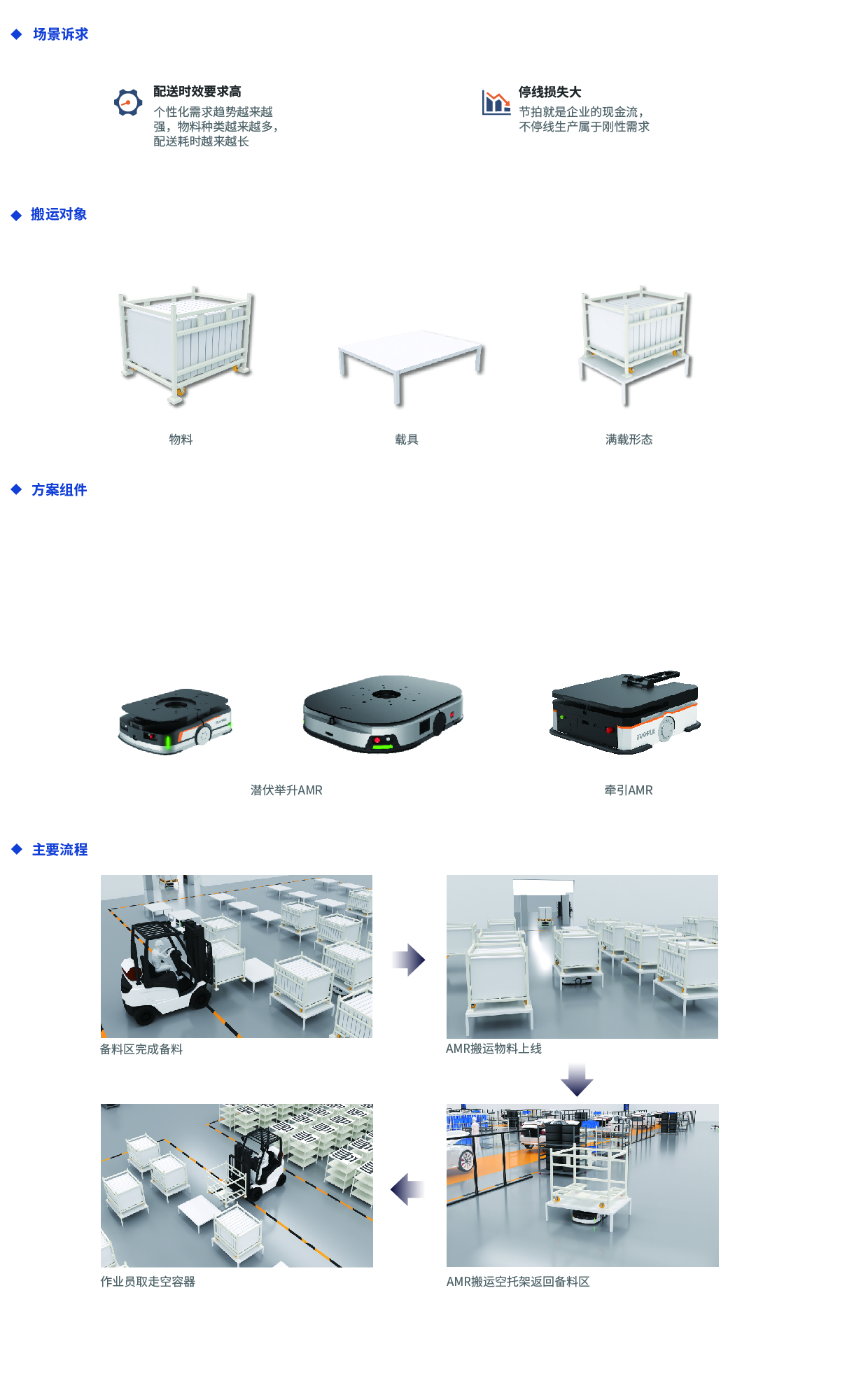 总装车间就是将车身、发动机、变速器、仪表板、车灯、车门等零部件进行装配产出整车的工艺车间;通过iWMS与上层业务系统无缝对接,实现物料智能排序,按时、自动拉动上线,满足产线高节拍要求。